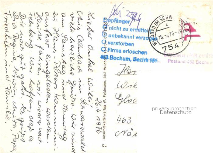 72743733 alte Postkarte Calmbach Enz Gesamtansicht Park Springbrunnen Enz Freibad postalisch gelaufen Erhaltung siehe scans [FriedD77] KatCode: 11110008235079