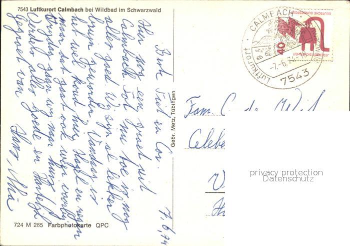 72494723 alte Postkarte Calmbach Enz Luftaufnahme postalisch gelaufen Erhaltung siehe scans KatCode: 11110008235079