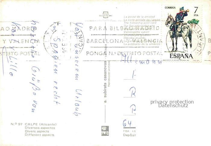 74005803 old postcard Calpe Calp Alicante ES Diversos aspectos postalisch gelaufen Erhaltung siehe scans [FriedD77] KatCode: 11510
