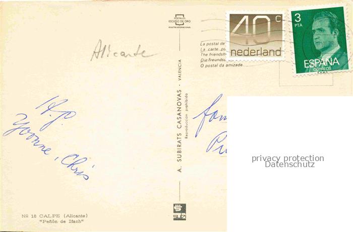 74155969 old postcard Calpe Calp Alicante ES Fliegeraufnahme Penon de Ifach postalisch gelaufen Erhaltung siehe scans [WerneD78] KatCode: 11510