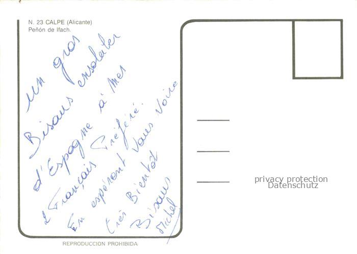 74015040 Calpe Calp Alicante ES Penón de Ifach Playa vista de noche postalisch nicht gelaufen Erhaltung siehe scans [FriedD77] KatCode: 11510
