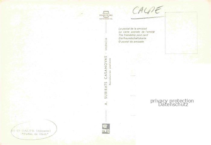 74042729 Calpe Calp Alicante ES Penon de Ifach postalisch nicht gelaufen Fliegeraufnahme Erhaltung siehe scans [FriedD77] KatCode: 11510