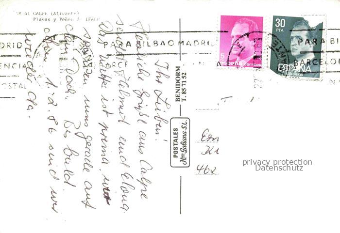 74155973 old postcard Calpe Calp Alicante ES Playas y Penon postalisch gelaufen Erhaltung siehe scans [WerneD78] KatCode: 11510