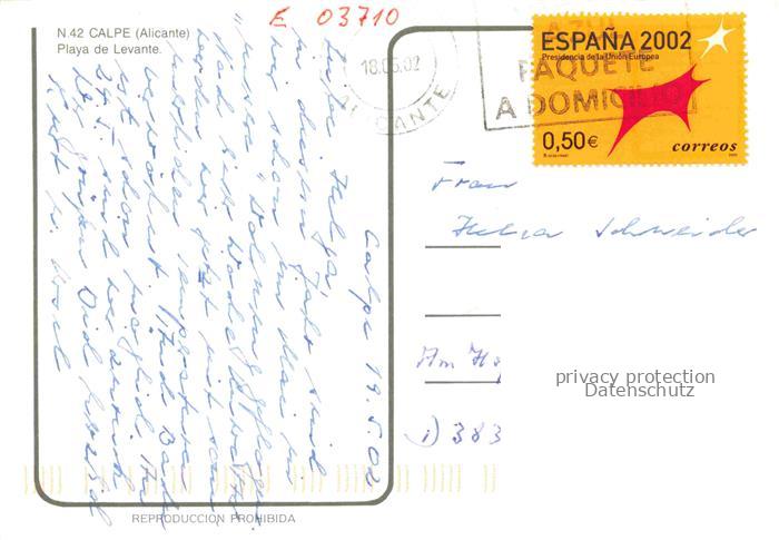 74006218 old postcard Calpe Calp Alicante ES Strand Promenade postalisch gelaufen Erhaltung siehe scans [FriedD77] KatCode: 11510