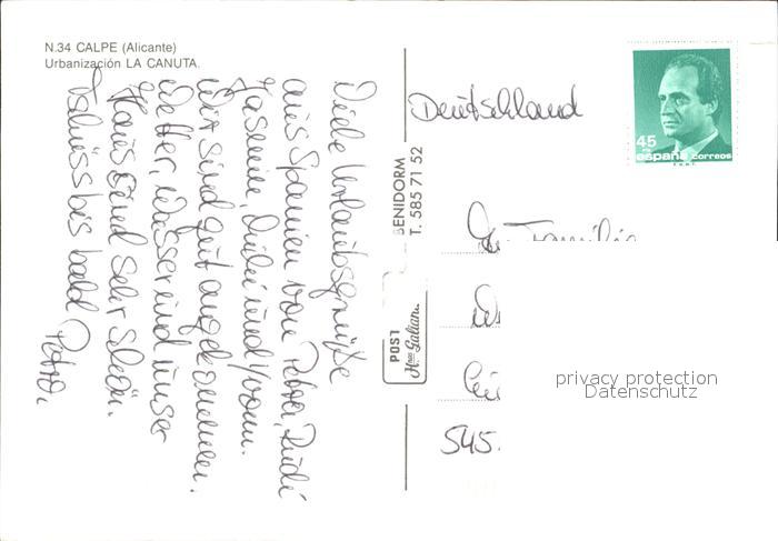 old postcard Calpe Costa Blanca Urbaziazion La Canuta postalisch gelaufen Erhaltung siehe scans