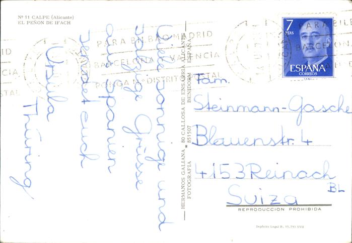 old postcard Calpe Penon de Ifach Partie an der Kueste postalisch gelaufen Erhaltung siehe scans