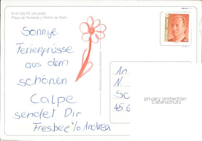 old postcard Calpe Playa de Poniente y Penon de Ifach postalisch gelaufen Erhaltung siehe scans [FriedD77]