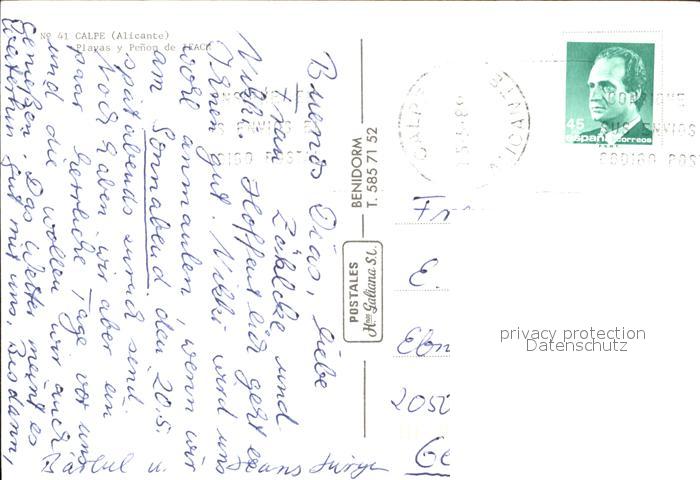 old postcard Calpe Playas y Penon de Ifach veduta aerea postalisch gelaufen Erhaltung siehe scans
