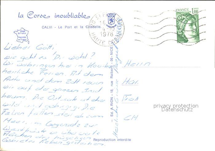 12351081 carte postale Calvi Le Port la Citadelle postalisch gelaufen Erhaltung siehe scans KatCode: 1117002B52B050