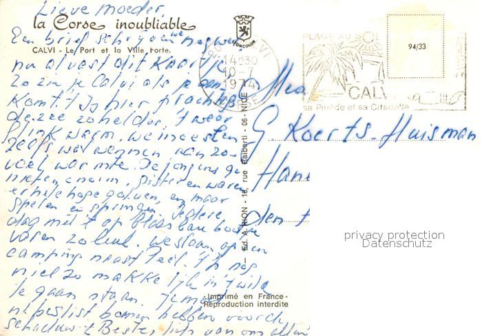 12970374 carte postale Calvi Port e Ville postalisch gelaufen Erhaltung siehe scans [LiesaD40] KatCode: 1117002B52B050
