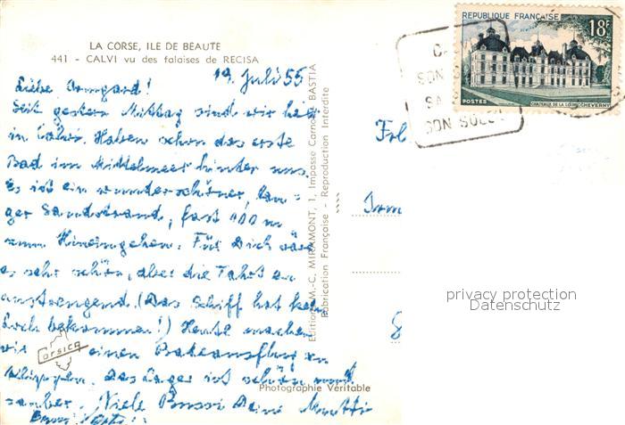 13531449 carte postale Calvi vu des falaises de Recisa postalisch gelaufen Erhaltung siehe scans [FriedD77] KatCode: 1117002B52B050