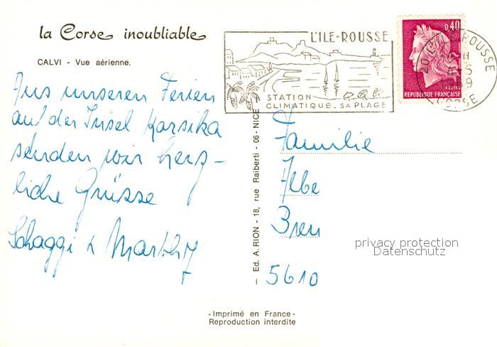 13243882 carte postale Calvi Vue aérienne postalisch gelaufen Erhaltung siehe scans [FriedD77] KatCode: 1117002B52B050