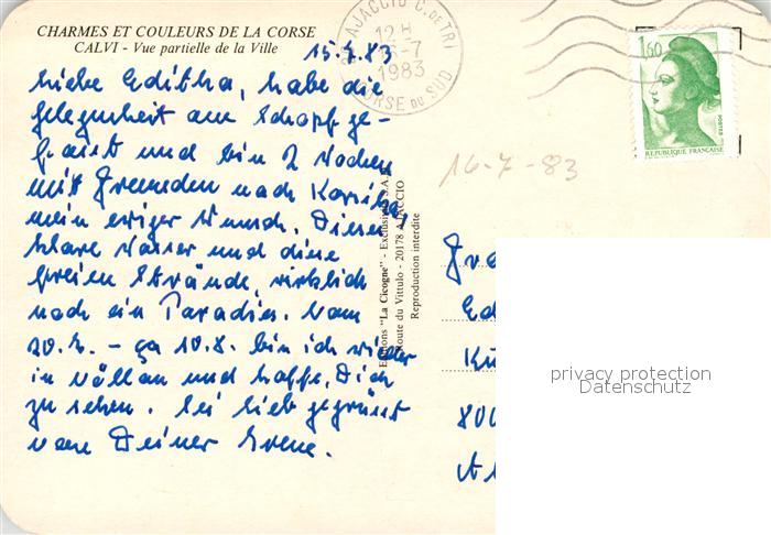13149009 carte postale Calvi Vue partielle de la ville Collection Charmes et Couleurs de la Corse postalisch gelaufen Erhaltung siehe scans [FriedD77] KatCode: 1117002B52B050