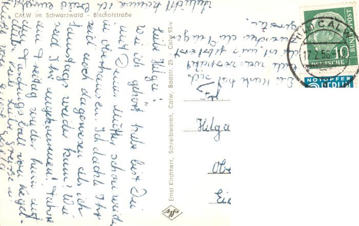 73943636 alte Postkarte Calw Bischofstrasse postalisch gelaufen Erhaltung siehe scans [WerneD78] KatCode: 11110008235085