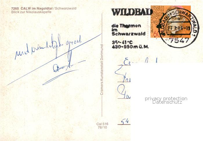 72929431 alte Postkarte Calw Brueckenpartie mit Nikolauskapelle im Nagoldtal postalisch gelaufen Erhaltung siehe scans [LiesaD40] KatCode: 11110008235085