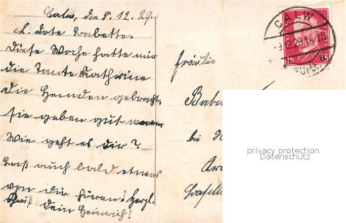 73506957 alte Postkarte Calw Eangelische Stadtkirche postalisch gelaufen Erhaltung siehe scans [KathaD81] KatCode: 11110008235085