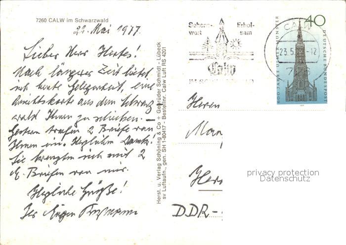 72332949 alte Postkarte Calw Fliegeraufnahme postalisch gelaufen Erhaltung siehe scans KatCode: 11110008235085
