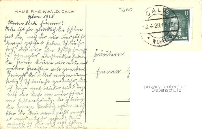32036290 alte Postkarte Calw Haus Rheinwald postalisch gelaufen Erhaltung siehe scans KatCode: 11110008235085