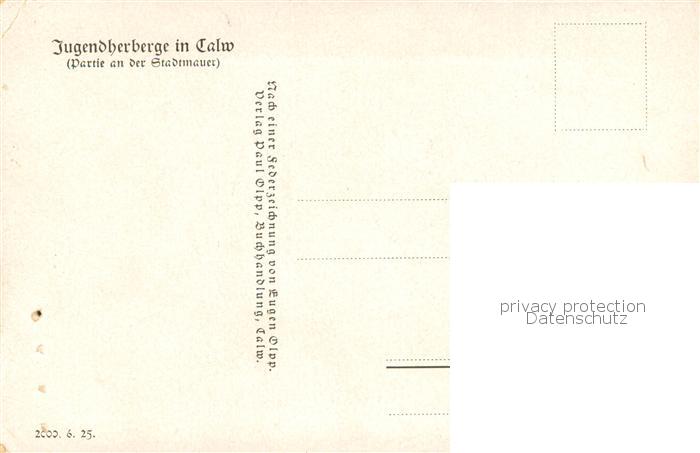 73771330 Calw Jugendherberge Partie an der Stadtmauer Federzeichnung E. Olpp Kuenstlerkarte postalisch nicht gelaufen Erhaltung siehe scans [FriedD77] KatCode: 11110008235085