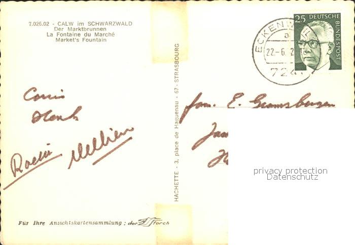 72304973 alte Postkarte Calw Marktbrunnen Fachwerkhaeuser postalisch gelaufen Erhaltung siehe scans KatCode: 11110008235085