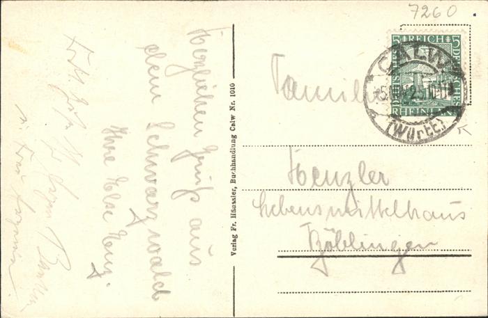 71340126 alte Postkarte Calw Ortsansicht Neue Handelsschule und Schlossberg postalisch gelaufen gute Erhaltung KatCode: 11110008235085