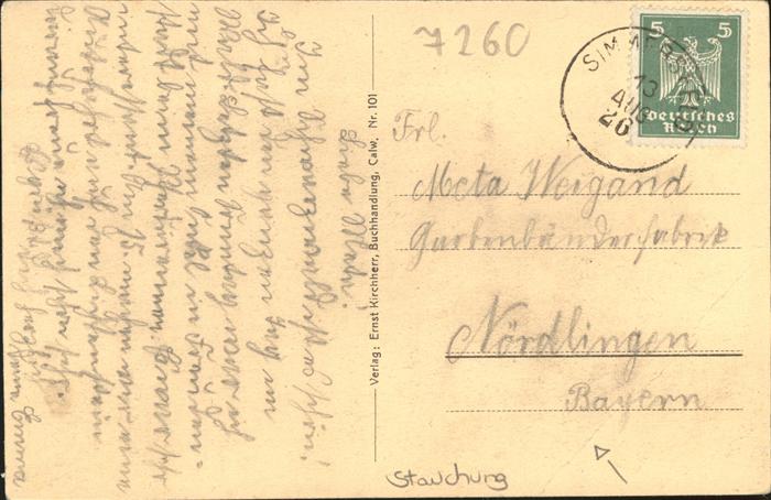 71339864 alte Postkarte Calw Partie an der Nagold mit Nikolauskapelle postalisch gelaufen gute Erhaltung KatCode: 11110008235085