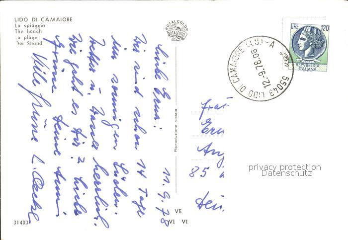 old postcard Camaiore Lido Strand postalisch gelaufen Erhaltung siehe scans