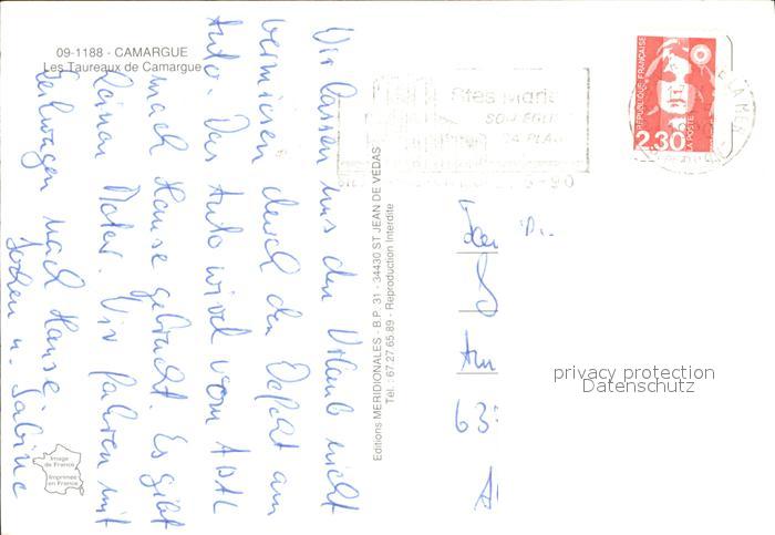 12499968 carte postale Camargue Stier postalisch gelaufen Erhaltung siehe scans KatCode: 11170013213096