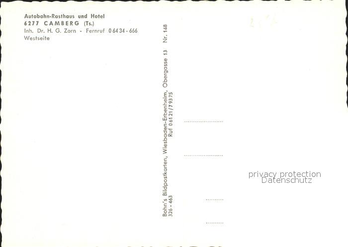 72231323 Camberg Bad Autobahn- Rasthaus Hotel postalisch nicht gelaufen Erhaltung siehe scans KatCode: 11110006533003