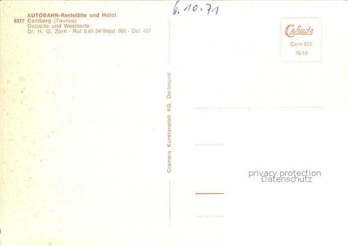 72126217 Camberg Bad Autobahn Raststaette und Hotel postalisch nicht gelaufen KatCode: 11110006533003