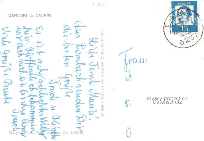 74028128 alte Postkarte Camberg Bad Fliegeraufnahme postalisch gelaufen Erhaltung siehe scans [FriedD77] KatCode: 11110006533003