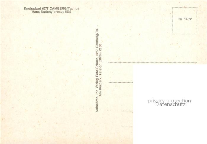 73016384 Camberg Bad Haus Sadony postalisch nicht gelaufen Erhaltung siehe scans [NatalD47] KatCode: 11110006533003