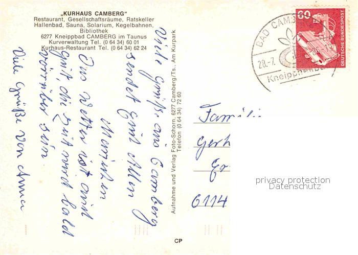 72797075 alte Postkarte Camberg Bad Kurhaus Restaurant postalisch gelaufen Erhaltung siehe scans [LiesaD40] KatCode: 11110006533003
