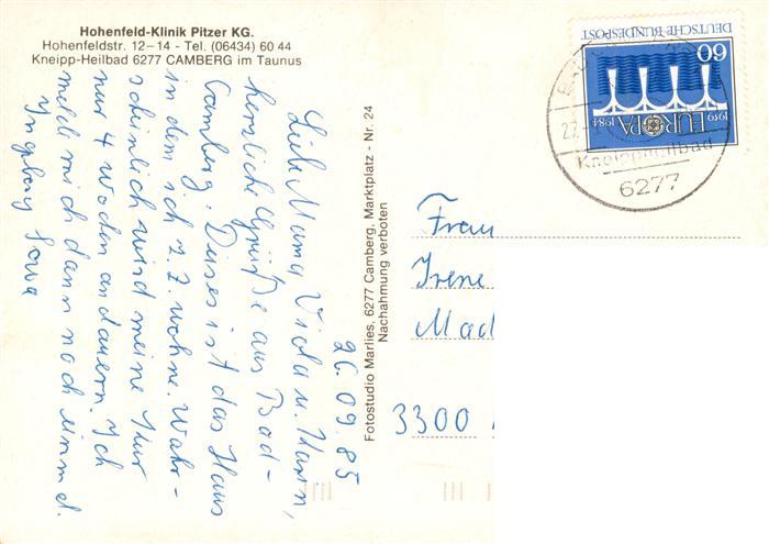 73885963 alte Postkarte Camberg Bad Kurklinik Cambeerg Pitzer KG postalisch gelaufen Erhaltung siehe scans [WerneD78] KatCode: 11110006533003