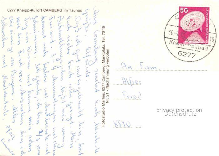 72917220 alte Postkarte Camberg Bad Kurklinik Pitzer KG Empfang Schwimmbad Speiseraum Patientenzimmer postalisch gelaufen Erhaltung siehe scans [KathaD81] KatCode: 11110006533003