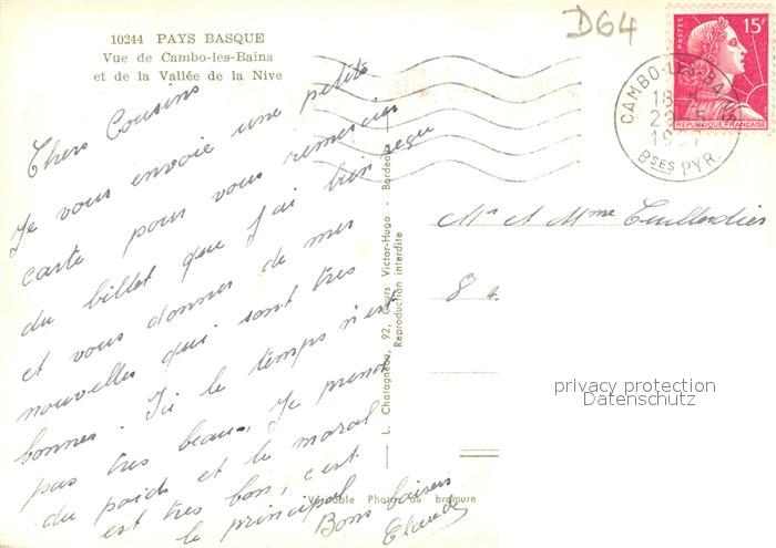 13581198 carte postale Cambo-les-Bains Panorama Vallee de la Nive postalisch gelaufen Erhaltung siehe scans [FriedD77] KatCode: 11170064164160