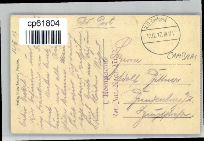 10769141 Cambrai [handschriftlich] Port Hafen KatCode 11170059259122