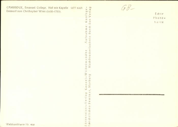 11474965 Cambridge Cambridgeshire Emanuel College postalisch nicht gelaufen Erhaltung siehe scans KatCode: 11570UKH1H12UB