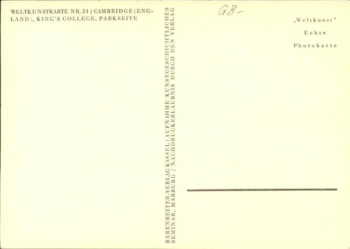 11474963 Cambridge Cambridgeshire Weltkunstkarte Kings College postalisch nicht gelaufen Erhaltung siehe scans KatCode: 11570UKH1H12UB