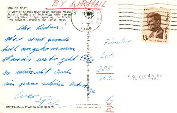 73130916 old postcard Cambridge Massachusetts Air view of Charles River Basin Massachusetts Institute of Technology Bridges postalisch gelaufen Erhaltung siehe scans [FriedD77] KatCode: 14140230000000