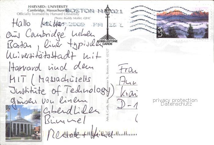72261717 old postcard Cambridge Massachusetts Harvard University Bridge Church postalisch gelaufen Erhaltung siehe scans KatCode: 14140230000000