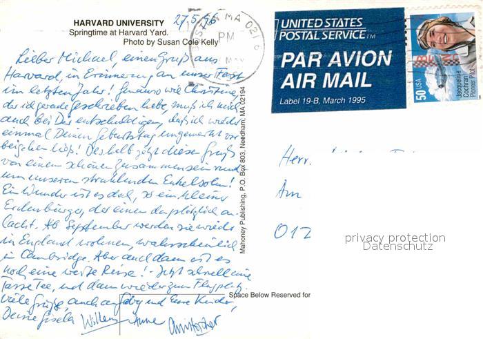 72648992 old postcard Cambridge Massachusetts Havard University postalisch gelaufen Erhaltung siehe scans [WerneD78] KatCode: 14140230000000