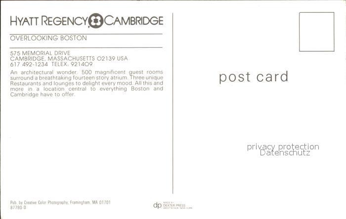 72252998 Cambridge Massachusetts Hyatt Regency Cambridge postalisch nicht gelaufen Erhaltung siehe scans KatCode: 14140230000000