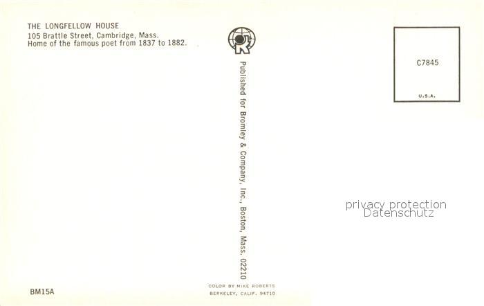 73713772 Cambridge Massachusetts The Longfellow House postalisch nicht gelaufen Erhaltung siehe scans [FriedD77] KatCode: 14140230000000