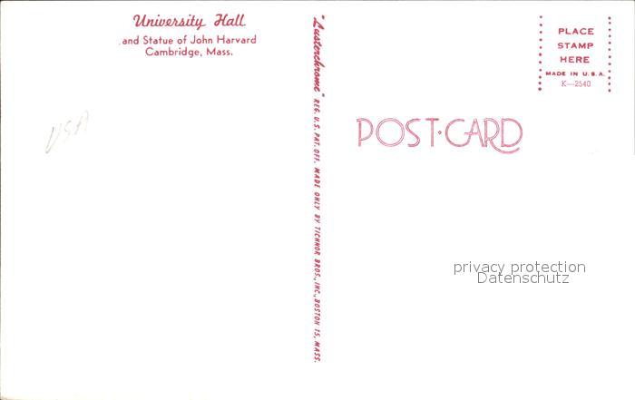 72486848 Cambridge Massachusetts University Hall postalisch nicht gelaufen Erhaltung siehe scans KatCode: 14140230000000
