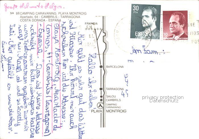 old postcard Cambrils Camping Caravaning Playa Montroig Minigolf Tennis postalisch gelaufen Erhaltung siehe scans