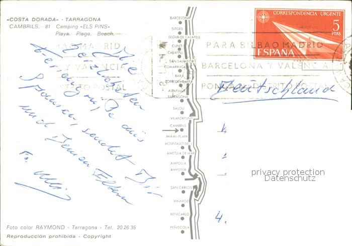 old postcard Cambrils Camping El Pins postalisch gelaufen Erhaltung siehe scans
