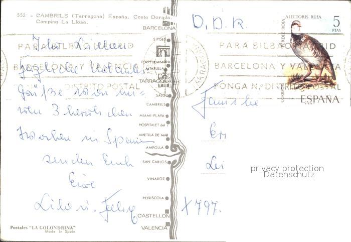 old postcard Cambrils Camping La Llosa Restaurant Strand postalisch gelaufen Erhaltung siehe scans