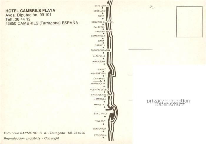 Cambrils Costa Dorada Hotel Cambrils Playa postalisch nicht gelaufen Erhaltung siehe scans [WerneD78]