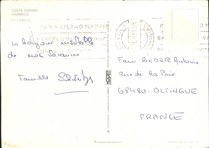 old postcard Cambrils Costa Dorada Strand postalisch gelaufen